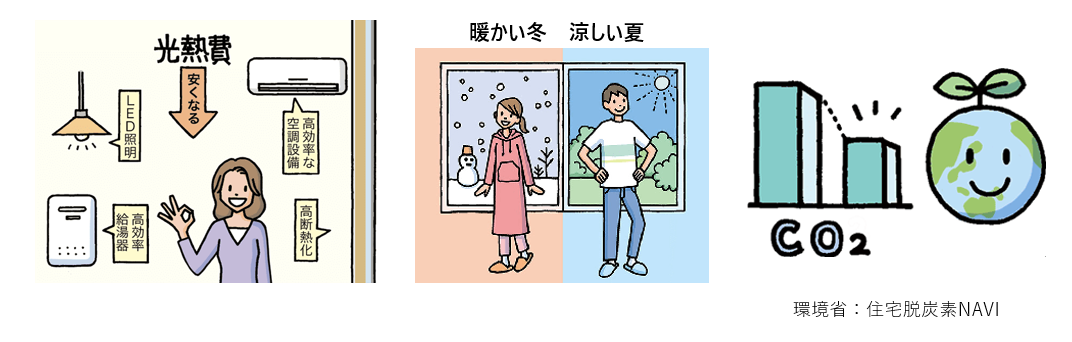 暑さや寒さをガマンして省エネを行うのではなく、快適に暮らしながら省エネルギーを実現して脱炭素社会に貢献することができます。